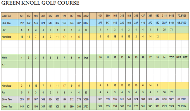 Download the 18-Hole Green Knoll Golf Course Scorecard